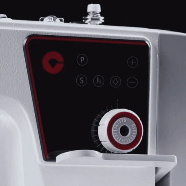 Una pantalla compacta de control de cristal líquido con una interfaz intuitiva integrada en el cuerpo de la máquina de coser.